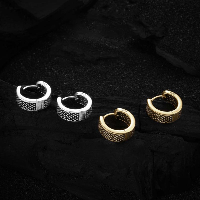 Female Fashion Do Old Hundred with A Sense of High-grade Pure Earrings Affordable Dainty Earrings Daily Wear Niche Retro Heavy Mesh Pattern Earrings