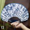 Vintage Shell-Shaped Folding Fan Portable Retro Cotton-Linen Chinese Style Hand Fold Fans Cheongsam Catwalk Dance Props Gifts
