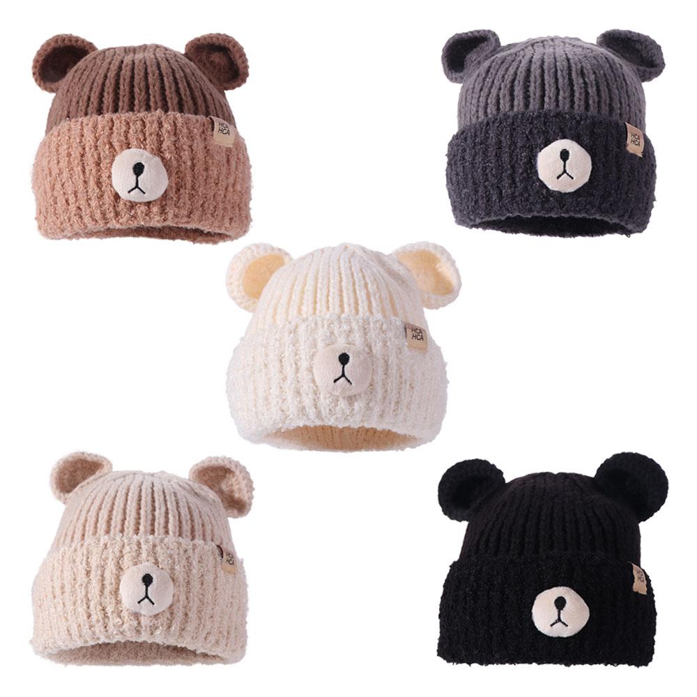 Ciepła Czapka Z Dzianiny z Uszami Misia Kreskówkowa Wełniana Czapka z Ochroną Uszu Urocza Zimowa Czapka Beanie Damska