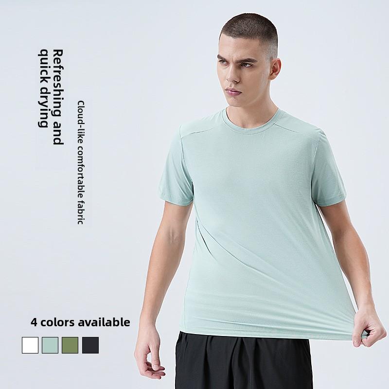 Męska koszulka z krótkim rękawem i okrągłym dekoltem Letnia do wędrówek i biegania na świeżym powietrzu Top odprowadzający wilgoć, szybkoschnący, w jednolitym kolorze