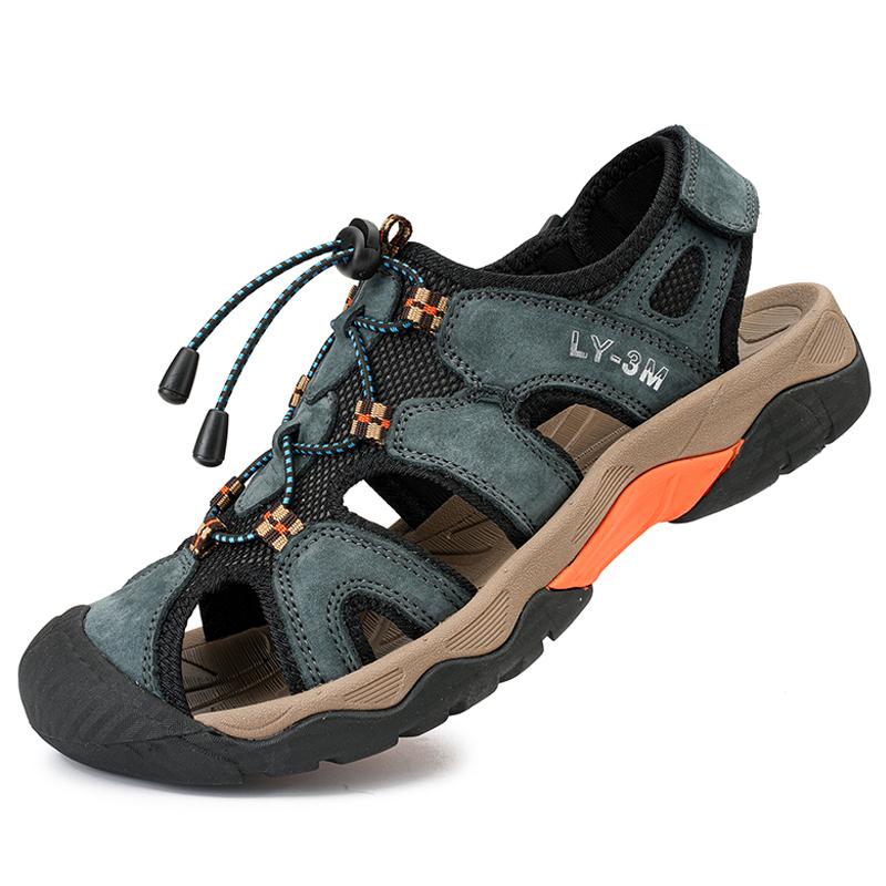 Duże rozmiary letnie męskie sandały plażowe w stylu rzymskim Oryginalne skórzane męskie sandały