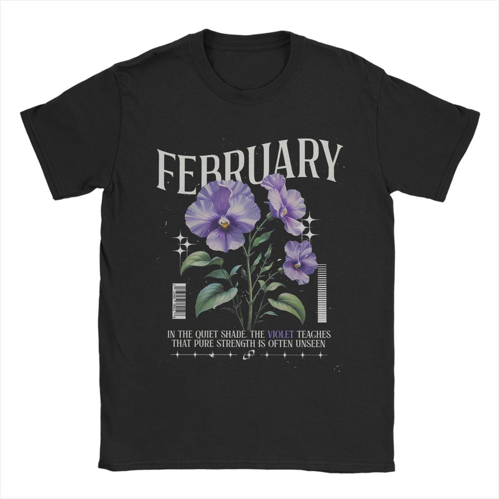 Birthflowers February Violet Birthflower Men's T Shirts Amazing Tee Shirt Short Sleeve Crewneck T-Shirts Cotton Printed Clothes