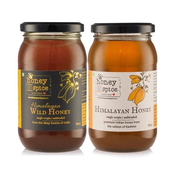 Miód i Przyprawy Himalajski Miód Dzikiej Pszczoły (500 gramów) i Miód Himalajski z Kaszmiru (500gm) Combo