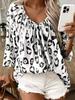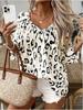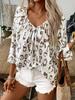 Spring Summer Women's Elegant Commute Top Beige Leopard Print V-Neck Ruffled 7/8 Sleeve Shirt