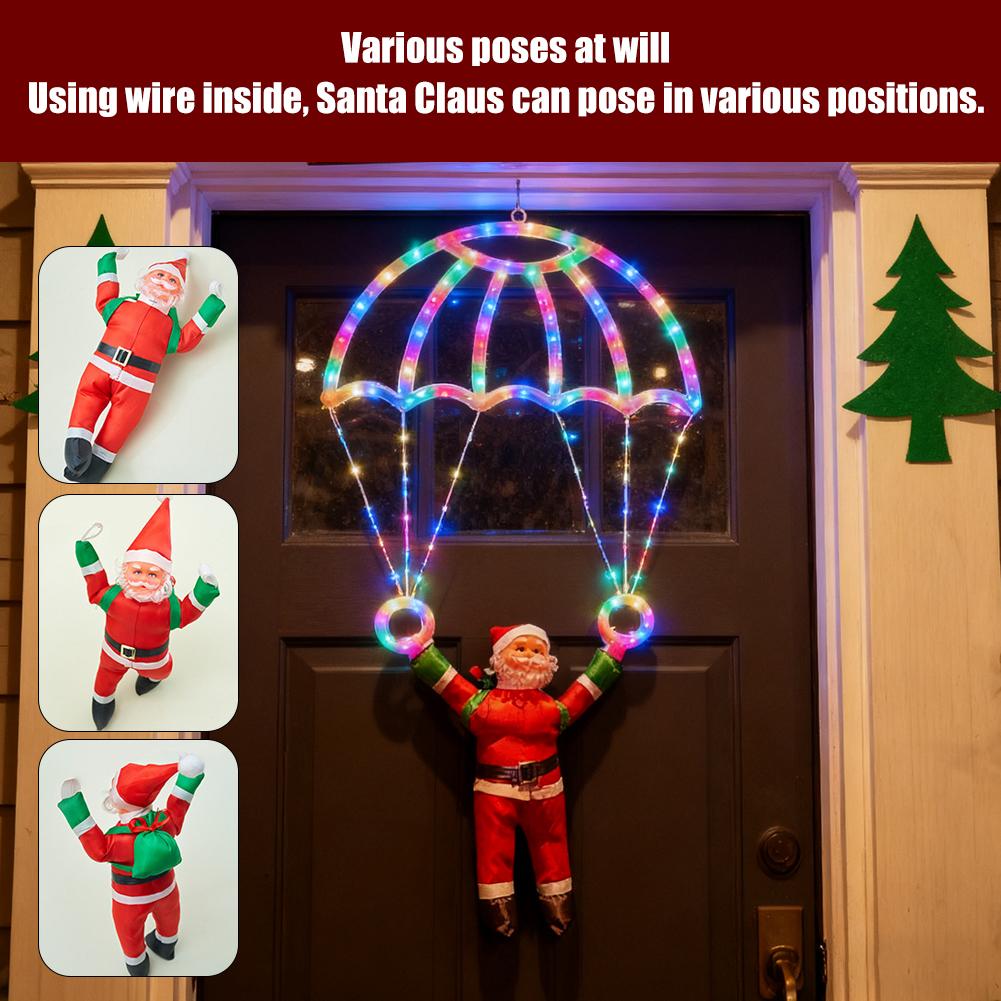 Christmas Parachute Light With Santa Claus 8 Mode Hanging Xmas Lamp For Roof Eave Porch Balcony Fence Tree Home Room Decor M1L1