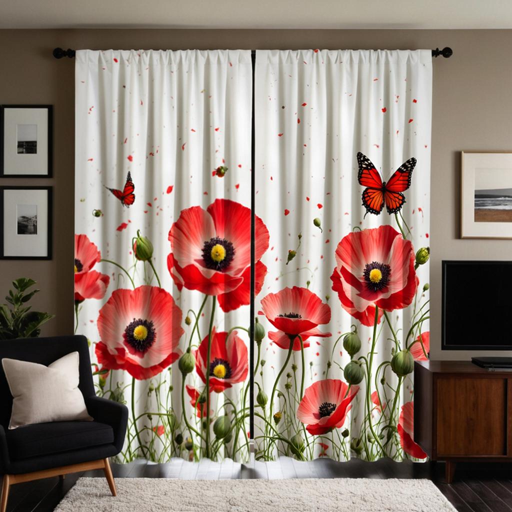 2 szt. zestaw HD Różowy kwiat motyl dekoracyjna zasłona Czerwone wiązanie zasłona z nadrukiem cyfrowym Dekoracja w stylu Dekoracja salonu