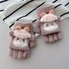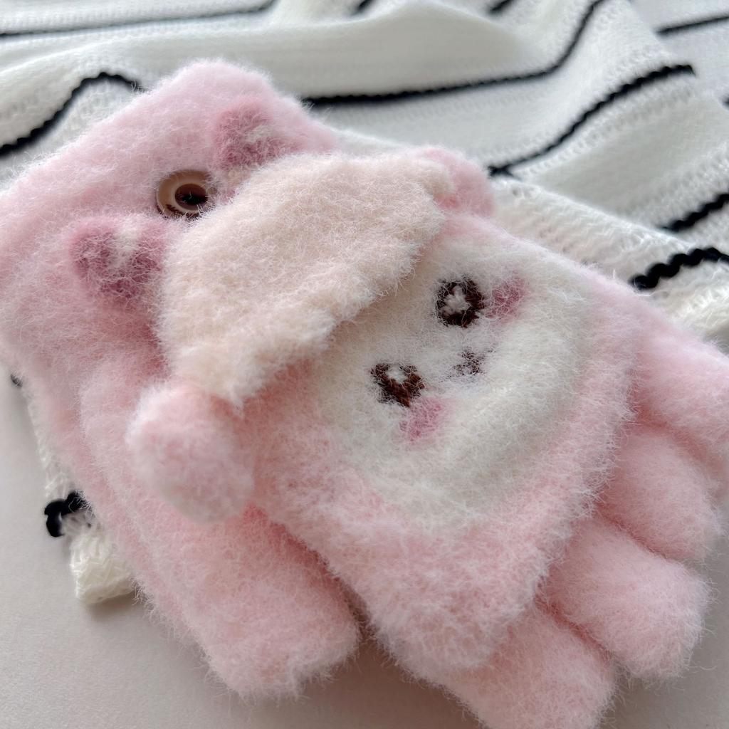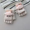 Dziecięce dzianinowe rękawiczki z klapką dla kobiet jesienno-zimowe z odkrytymi palcami, urocze, kręcone, pluszowe, ciepłe rękawiczki studenckie