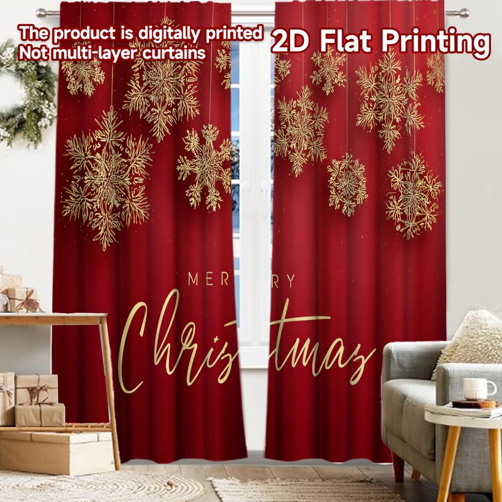 2pcs, 2D FLAT PRINTING Curtains (Without Rod) Festive Snowflakes Christmas Festival Chic Print Curtains Polyester Curtains