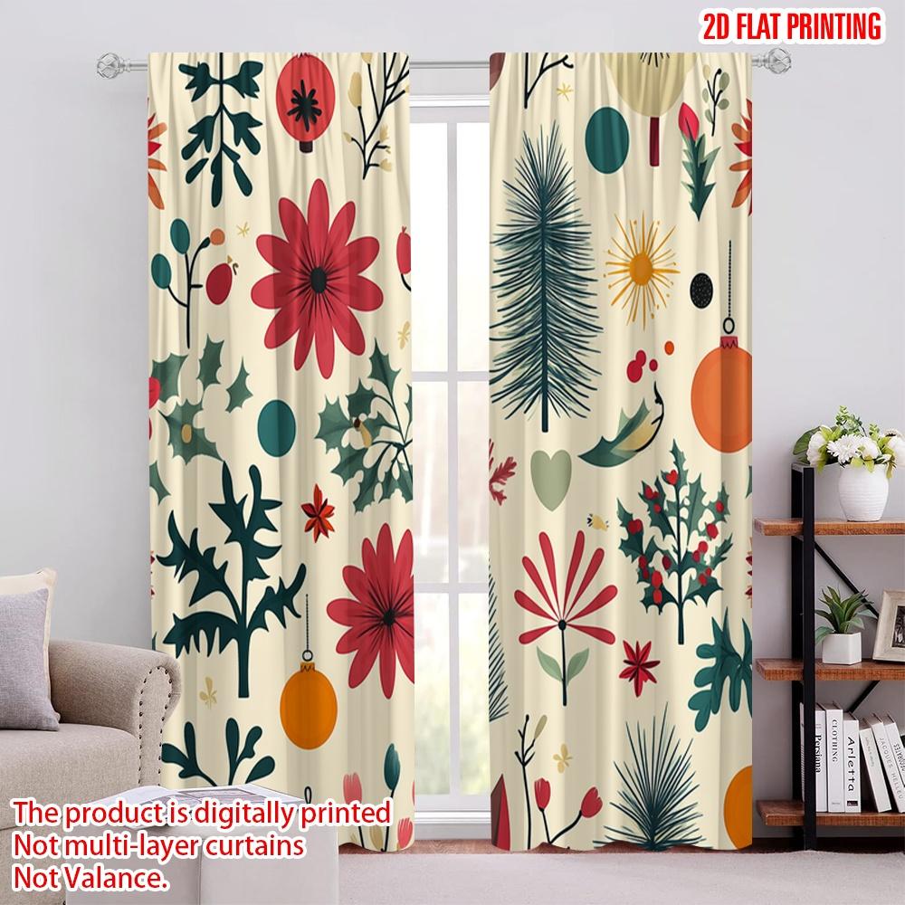 2pcs,2D plane printing Popular Curtains Christmas Balls Trees Flowers Versatile Polyester Fabric (without rod) All Seasons Use