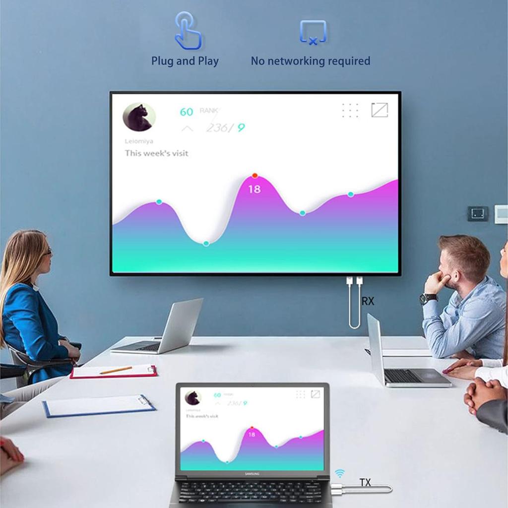 HD Receiver and Transmitter Kit - 1080P 4K Ultra Mode Dongle Adapter, Convenient 2-Cable Plug and Play Streaming Media for , Dongle, Labtop, PC