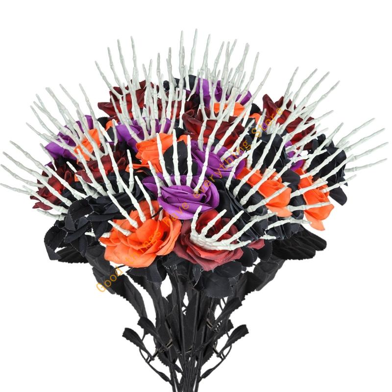 Adjustable Skeleton Hand Rose Stem Halloween Decoration Silk Floral Display For Home Office Haunting House Themes 55KF