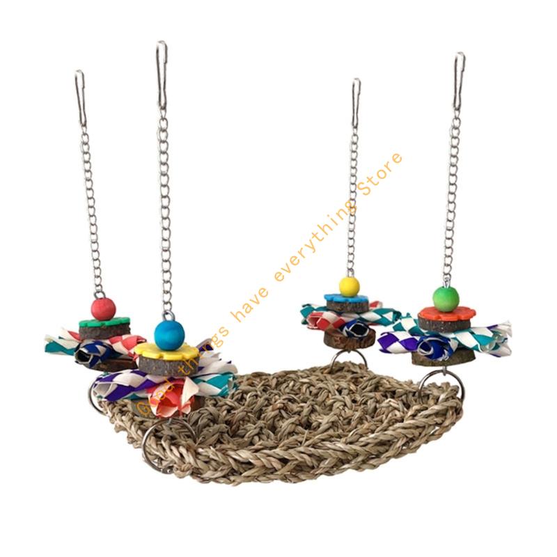 Multiuse Bird Exercise Hammock For Cockatiels Budgies Woven Straw Chewing Toy 55KF