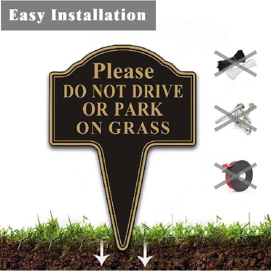 Do not Drive or Park on Grass Sign, Yuntarda 2-Pack 10”x14” Double Sided Stay Off Grass Sign with Integrated Stake Rust-free Aluminum Yard Sign