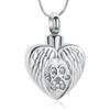 Heart Paw Print Urn Necklace for Ashes for Dog Cremation Jewelry Angel Wing Heart Urn Locket Pendant for Dog/Cat