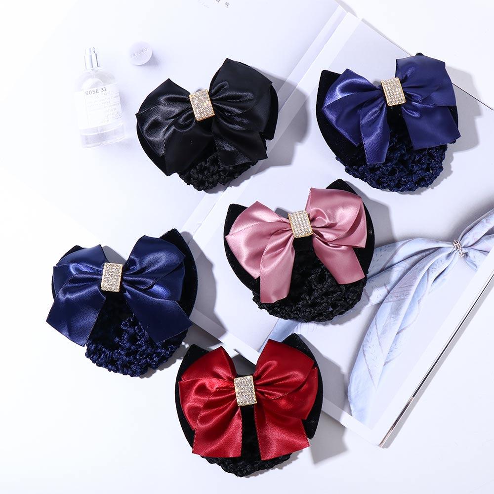 Zircon Nurse Big Bow Hotel Korean Bun Snood Women Spring Clips Ponytail Clip Hairgrips Cover Net