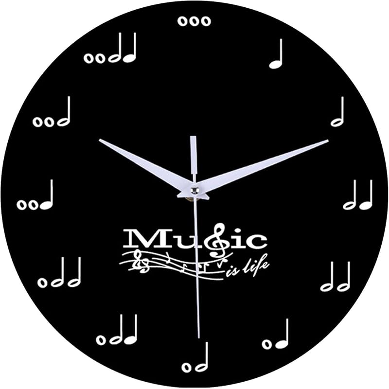 Creative Wall Clocks Musical Note Silent Clock Black / White Decorative Wall Clock for Kids Adult Students Room Home Office School Decor (1#Black