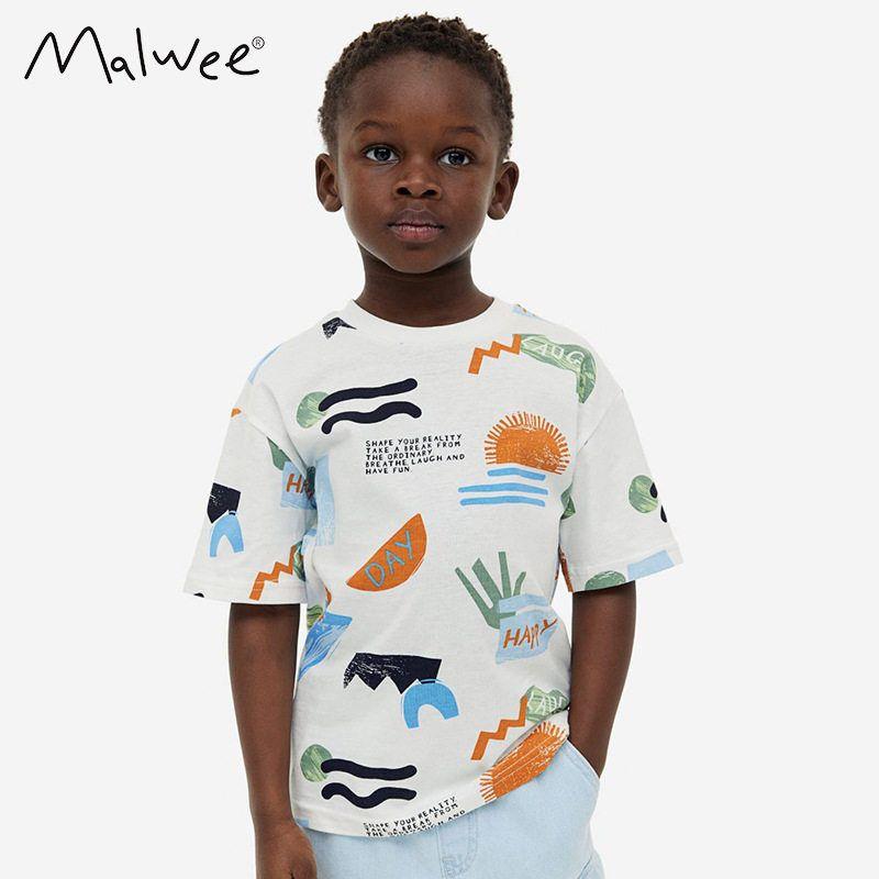 Malwee Boys' T-shirt Summer Wear New Arrival Fashion Pure Cotton Handsome Casual Short Sleeve Western Style round-Neck Shirt Kids Tops