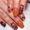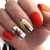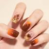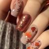 Fall Leaf Press on Nails Thanksgiving Pumpkin False Nails with Design Medium Square Artificial Stick on Nail Glossy Autumn Maple Leaves Acrylic Glue