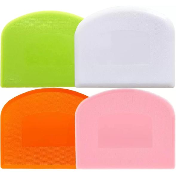 4 Pcs Food Dough Scraper, Plastic Multi - Purpose Kitchen Pastry Cutting Tool, BPA Free Flexible Bowl Scraper with Curved Edge, Cake Baking Bench