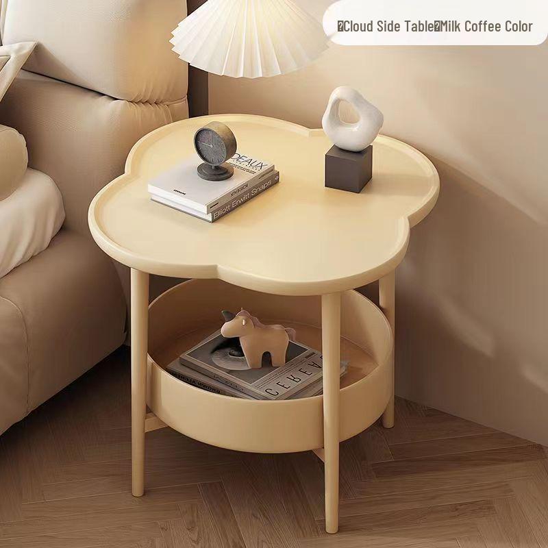 Nowoczesny Minimalistyczny Kremowy Stolik Nocny Koniczyna Czterolistna z Zakrzywioną Powierzchnią i Przechowywaniem