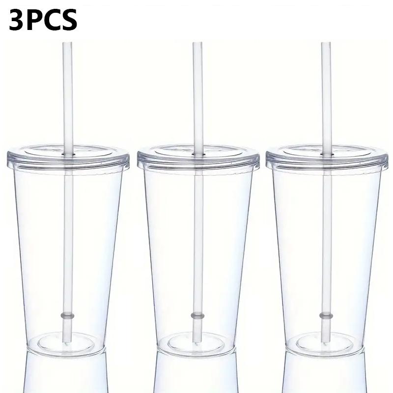 3 szt. Wielokrotnego użytku Jednowarstwowy Przezroczysty Plastikowy Kubek do Picia Butelka na Wodę z Pokrywką Słomką Outdoorowy Napój Kubek na Herbatę Mleko Kawę Narzędzia
