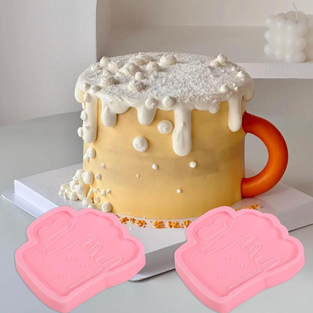 2 Pcs Creative Beer Shape Silicone Molds, Cute Beer Cup Fondant Mold, For Kitchen Baking, Candy, Biscuits, Chocolate, Cake Decoration, Chewing Gum,