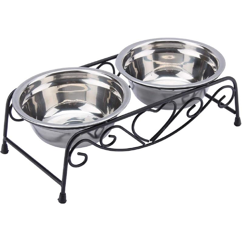 Pet Bowl, Stainless Steel Double Cat Dog Waterer Bowls Elevated Dog Feeder Pet Food Water Bowls with Retro Iron Stand Double Diner Feeder Bowls