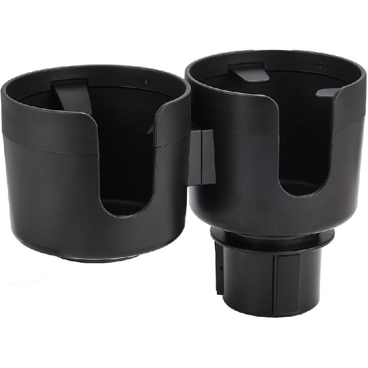 JSCARLIFE Dual Cup Holder Expander for Car - 2 in 1 Adjustable Car Cup Holder Adapter with Snack Organizer, Fits Most Vehicles, Holds Bottles, Cups,