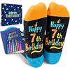 GIFTS FOR CHILDREN: Elevate celebrations with our charming socks featuring birthday presents, balloons and cakes. These 7th birthday socks reveal a hidden message: "Happy 7th Birthday" - perfect for adding fun to any special occasion!