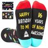 15 YEAR OLD GIFTS: These socks feature birthday gifts, hats on the top, while the bottom features a secret message written in non-slip ink: "HAPPY BIRTHDAY TO ME, 16 YEARS OF BEING AWESOME." They make an ideal gift for Birthdays or Christmas.