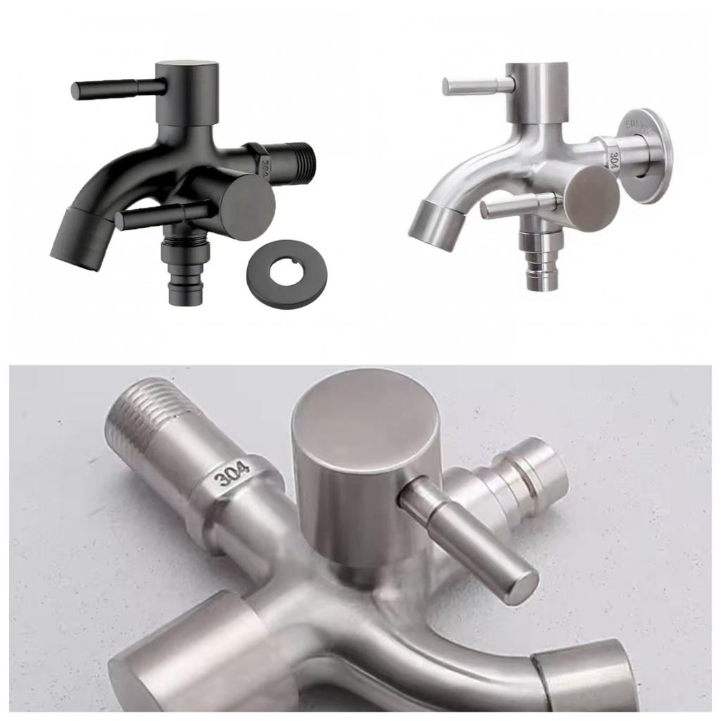 1 szt. Wielofunkcyjny kran do pralki ze stali nierdzewnej 304, podwójne wyjście, czarno-srebrny