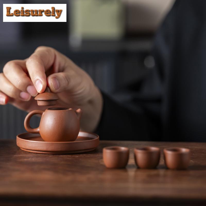 Kreatywny Mały Fioletowy Zestaw do Herbaty z Gliny Zhu Ręcznie Robiony Czajniczek na Palec 1 Czajniczek 4 Filiżanki Zestaw do Gry w Herbatę Zwierzątko Ozdoba do Ceremonii Herbacianej Kung Fu