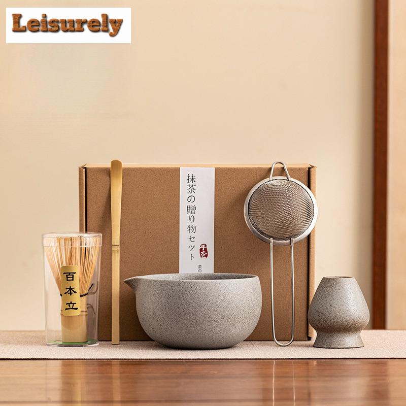 Japoński Zestaw do Herbaty z Grubej Ceramiki Kompletny Zestaw Miotełka do Mieszania Matchy Japoński Zestaw Matcha Zestaw do Parzenia Herbaty Uchwyt na Herbatę Ceremonia Herbaty