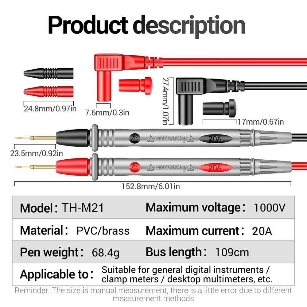 Themisto TH-M21 20A 1000V Copper Multimeter Test Leads | Length 110cm