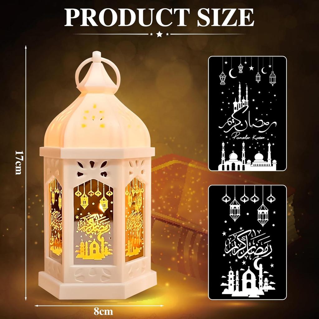Ramadan Lantern Lights 2pcs 8in Ramadan Decorations for Home, Ramadan Table Decor Lantern, Ramadan Gifts for Kids, Eid Decoration for Home Indoor