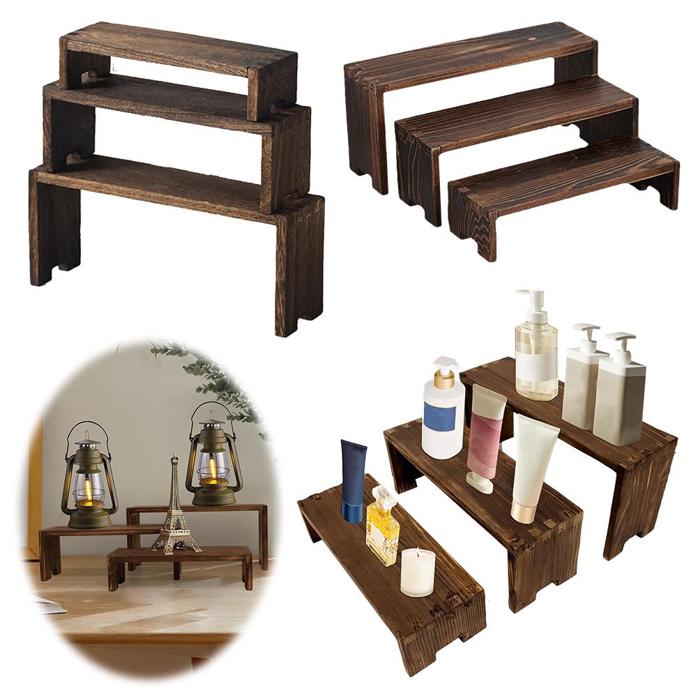 3 szt. Drewniane stojaki na babeczki Organizer na biurko Drewniane stojaki na desery Drewniany zestaw stojaków ekspozycyjnych na rośliny, przedmioty kolekcjonerskie i dekoracyjne