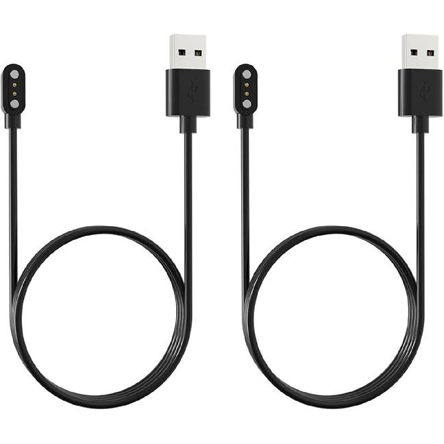 2Pcs 2-Pin Universal Black USB Data Charging Cable with Magnetic Charger Charging Mode for Smart Watch 2.84mm