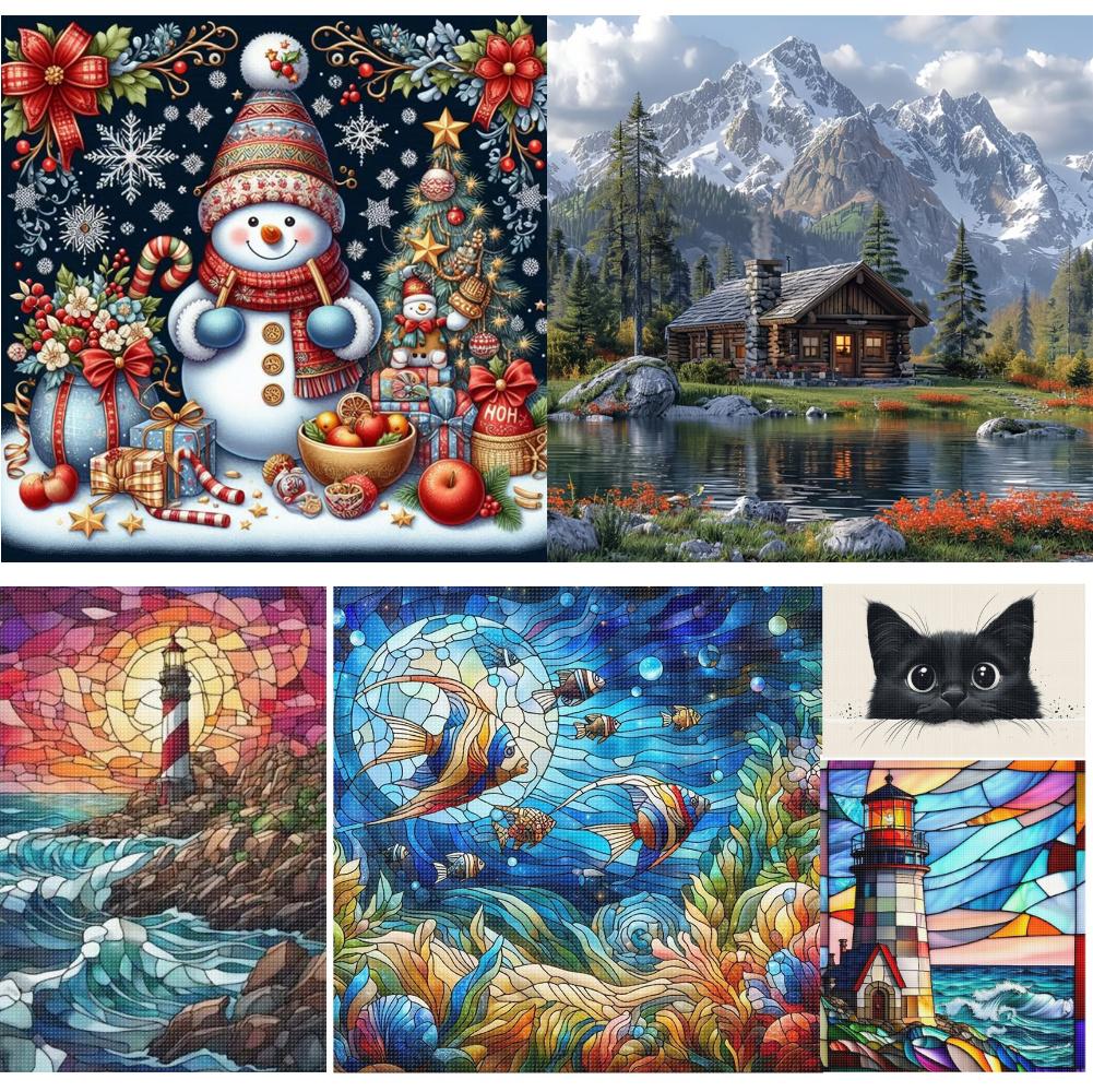 Zestaw do haftu krzyżykowego z kotem Zestaw do haftu krzyżykowego ze szklanym witrażowym latarnią morską Zestaw do haftu DIY 11CT Zestaw do rękodzieła Dekoracja domu Ozdoby