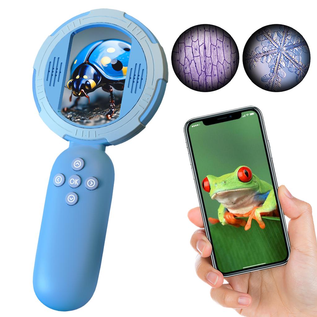 Handheld Microscope 4X with 2in Screen & 8 LED Lights Kids Magnifer Kid Mini Microscopes Science Kit Gift for Boys & Girls
