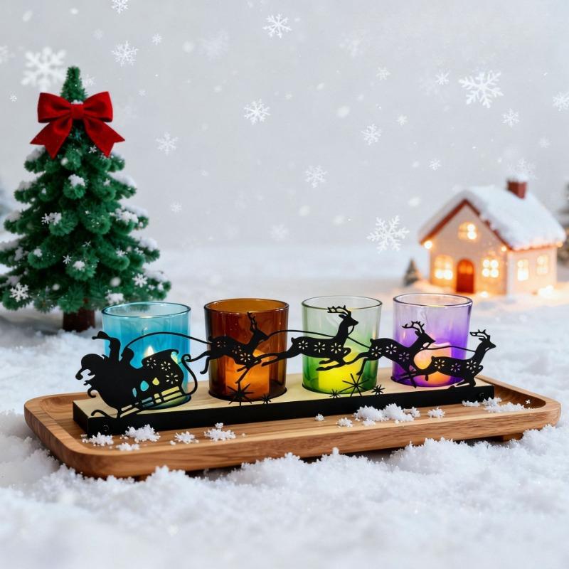 Valentine's Day Holiday Christmas Tealight Votive Candle Holder Include 1 Candle Tray &4 Candle Holders Table Decorations Indoor