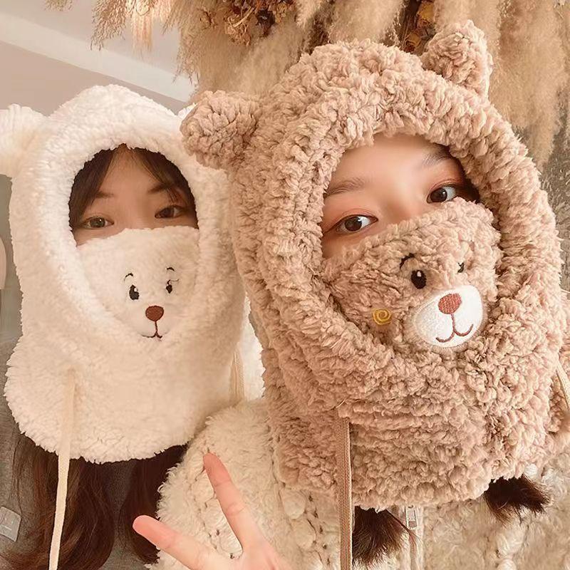 Zimowa czapka niedźwiedzia i szalik zintegrowane, jazda na rowerze, aby utrzymać ciepło i wiatroodporność, urocza maska i szalik zintegrowane, czapka Lei Feng dla dzieci