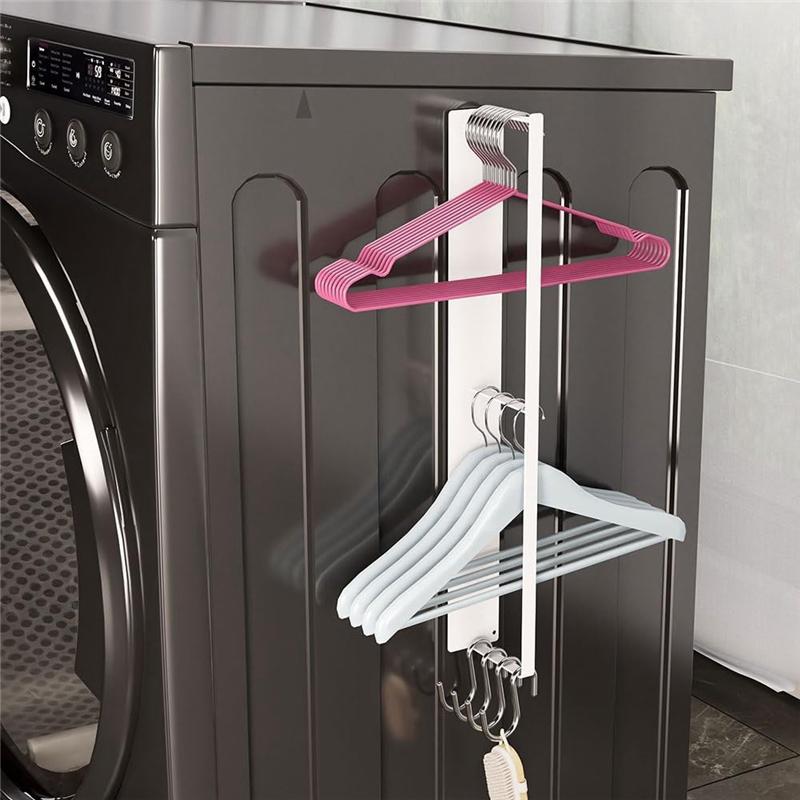 ABWR-Magnetic Clothes Hanger Dryer Side Hanger, Laundry Room Organization And Storage Hanger Rod Rack