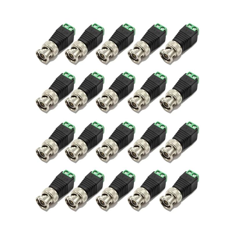 ABWR-20Pcs Male Metal BNC Connector With DC Connector Plug Screw Terminal UTP Video Balun For CCTV Surveillance Camera