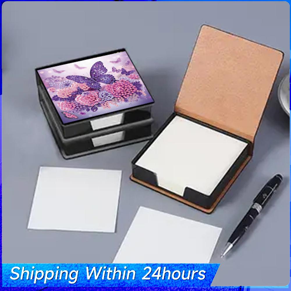 (Butterfly/Flower/Cat)--Diamond Painting Kit Note BoxDIY Rhinestones PU Diamond Painting Kit Note Box with 160 Sheets Paper Memo Paper Storage Box for Adults Gift Home Decor