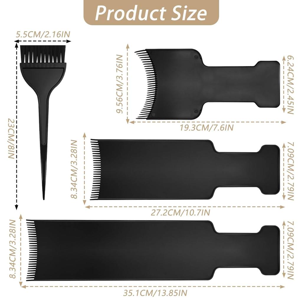 4 PCS Balayage Highlighting Board and Highlighting Brush Kit, 1 Hair Dye Brush and 3 Balayage Highlighting Board with Teeth Hair, for Hair Dye,