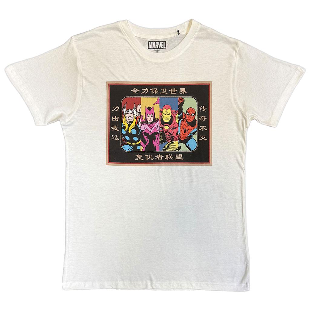 Marvel Comics Unisex Adult Avengers Framed Japanese T-Shirt