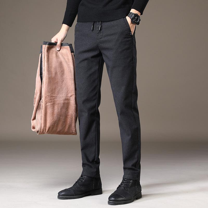 Jesienne i zimowe wełniane spodnie dresowe z elastycznym pasem dla mężczyzn, proste, luźne, wszechstronne, długie spodnie z przetarciami