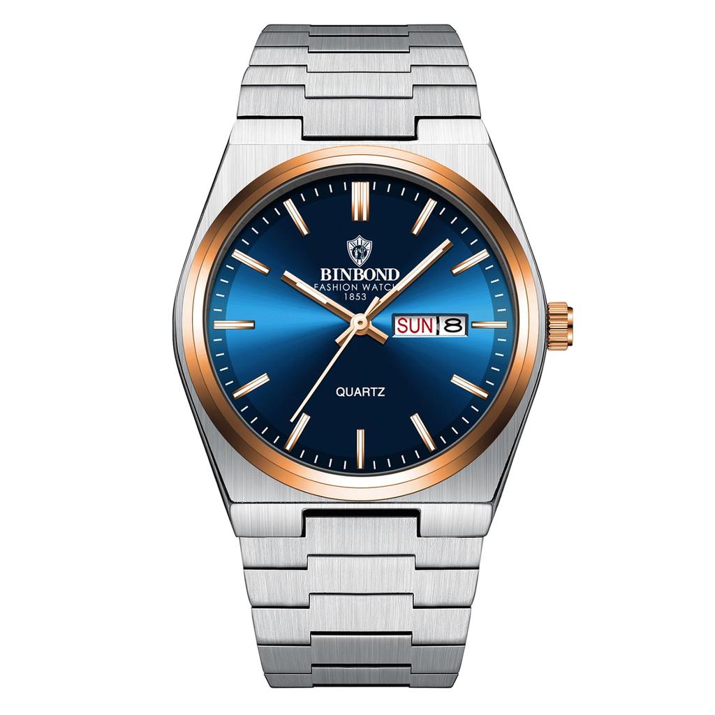 Men's Analog Watch with Stainless Steel Case, 3ATM Water Resistance, Calendar, Quartz Movement, and GoldSilver Colors - Perfect for Birthdays,