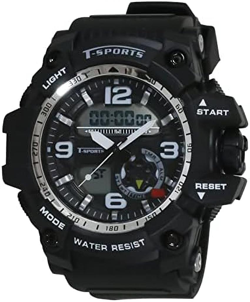 Crefer Men's Digital-Analog Waterproof Watch with Stopwatch and Urethane Strap, Black, TS-AD095-BK