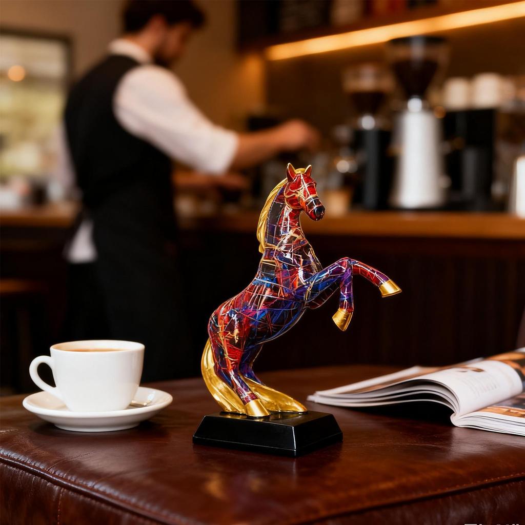 Standing Horse Figurine Resin Graffiti Animal Table Ornament Graffiti Animal Horse Statue For Living Room Table Shelf Lockers